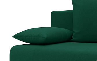 Заказала этот диван в изумрудном цвете. Понравилась его форма – строгая и в то же время необычная. Диван не громоздкий, занимает немного места как в сложенном, так и в разложенном положении. Раскладывается легко. Ткань плотная, качественная и приятная на ощупь.
