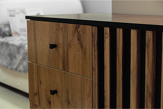 Выбрала этот комод за компактность, но хорошую вместительность. Он неширокий, поэтому легко поместился в нужное место. Удобные ручки, ящики плавно ходят. Мебель от Олмеко всегда сравнительно недорого выходит. И как правило, качество радует.