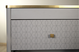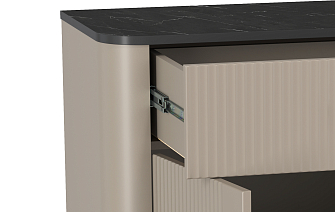 Изделия оборудуются дверцами и просторными полками, небольшими ячейками для хранения. Ручки на выбор — накладные, встроенные. Ящики могут выдвигаться простым нажатием на фасад.