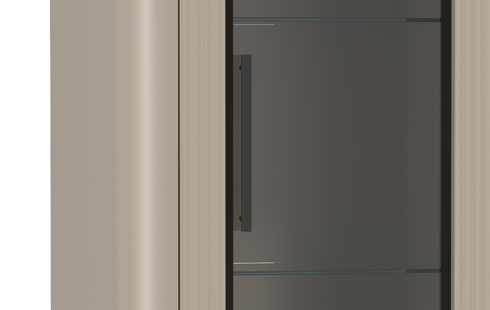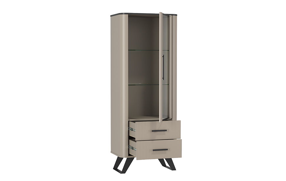 Шкаф витрина 76.02 Фиделия (серый камень / мрамор черный / ДВПО: серый камень / пленка: ПВХ серый камень / профиль: Masa Decor серый камень) исполняется в классическом стиле и спокойных цветах. Модель сочетает в себе простоту и функциональность, но при этом не выглядит громоздко. Она гармонично впишется в пространство, не утяжеляя его.