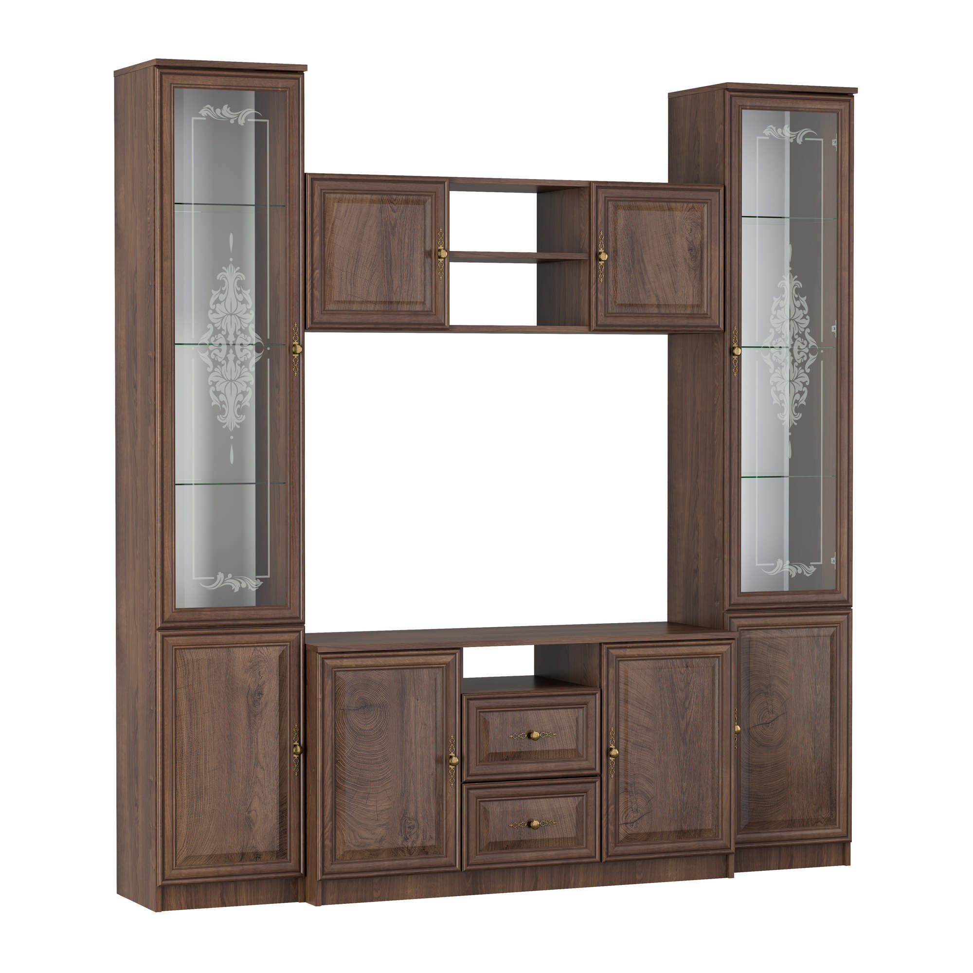 Шкаф комбинированный 06.87 Габриэлла (дуб кальяри/ПВХ Дуб коньяк/профиль дуб кальяри патина/ стекло св. с песк/латунь) исполняется в классическом стиле и спокойных цветах. Модель сочетает в себе простоту и функциональность, но при этом не выглядит громоздко. Она гармонично впишется в пространство, не утяжеляя его.