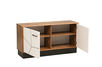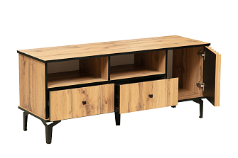 Очень красивая и многофункциональная тумба. Поставили телевизор и по бокам остались места с двух сторон для колонок. В отсеке по середине место занял DVD. У тумбы приятный на ощупь материал. Дизайн элегантный и уникальный. Дверцы легко открываются.