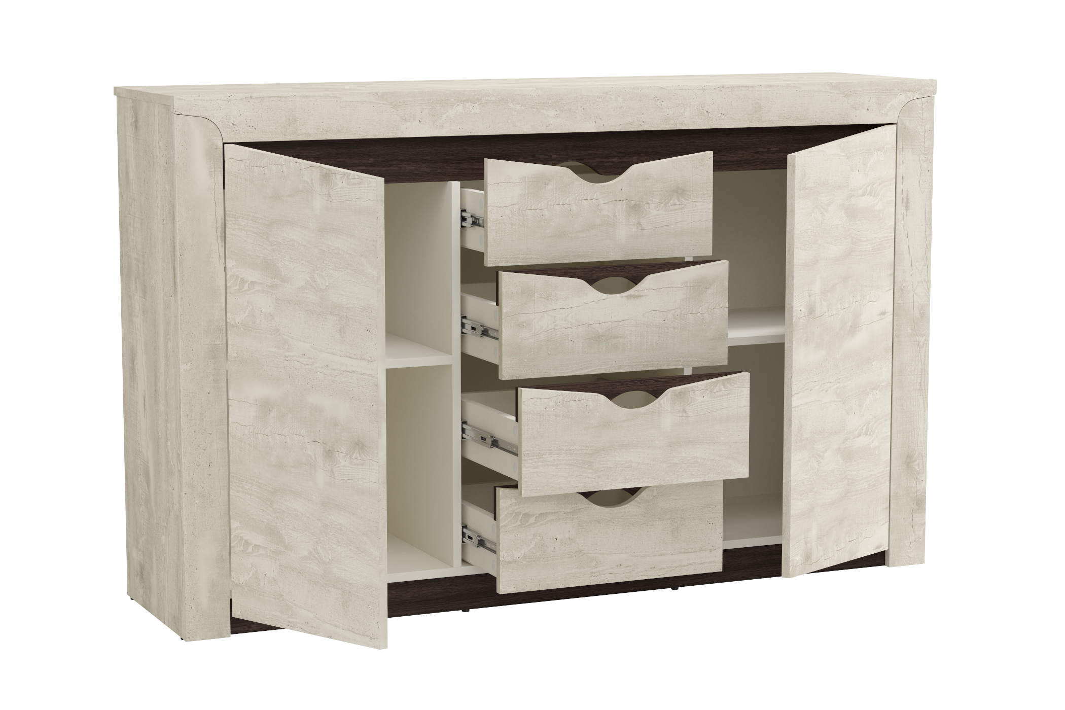 Тумба 33.19 Лючия # (бетон пайн белый / венге / белый) совмещает благородную привлекательную эстетику с практичностью и хорошим функционалом. Продуманный дизайн уместно дополнит созданный интерьер и органично впишется в любое помещение.