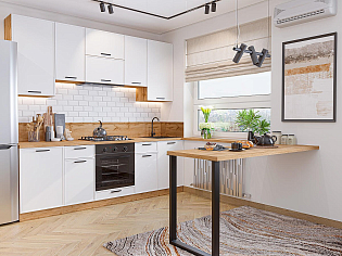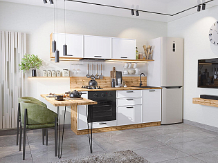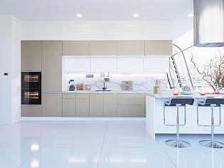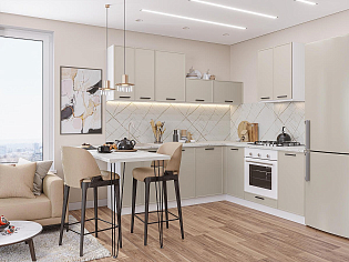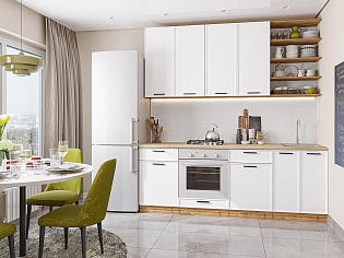 Главный плюс: много шкафчиков.  Выбрали вариант сандал белый. И не прогадали. Смотрится великолепное. Жаль, что двери идут без доводчиков.