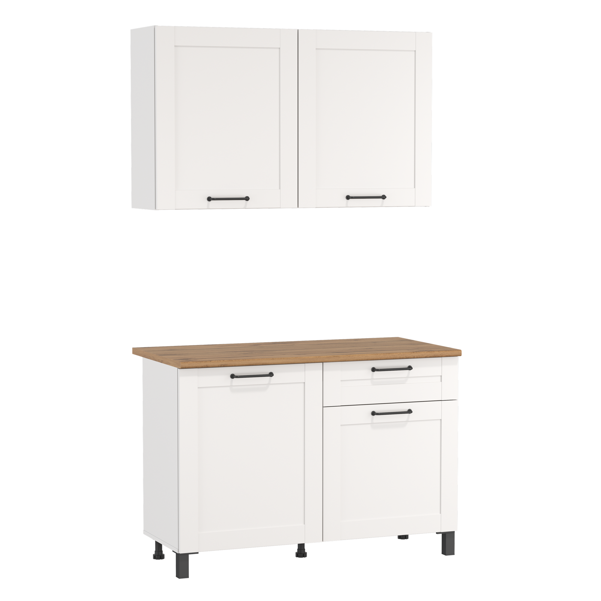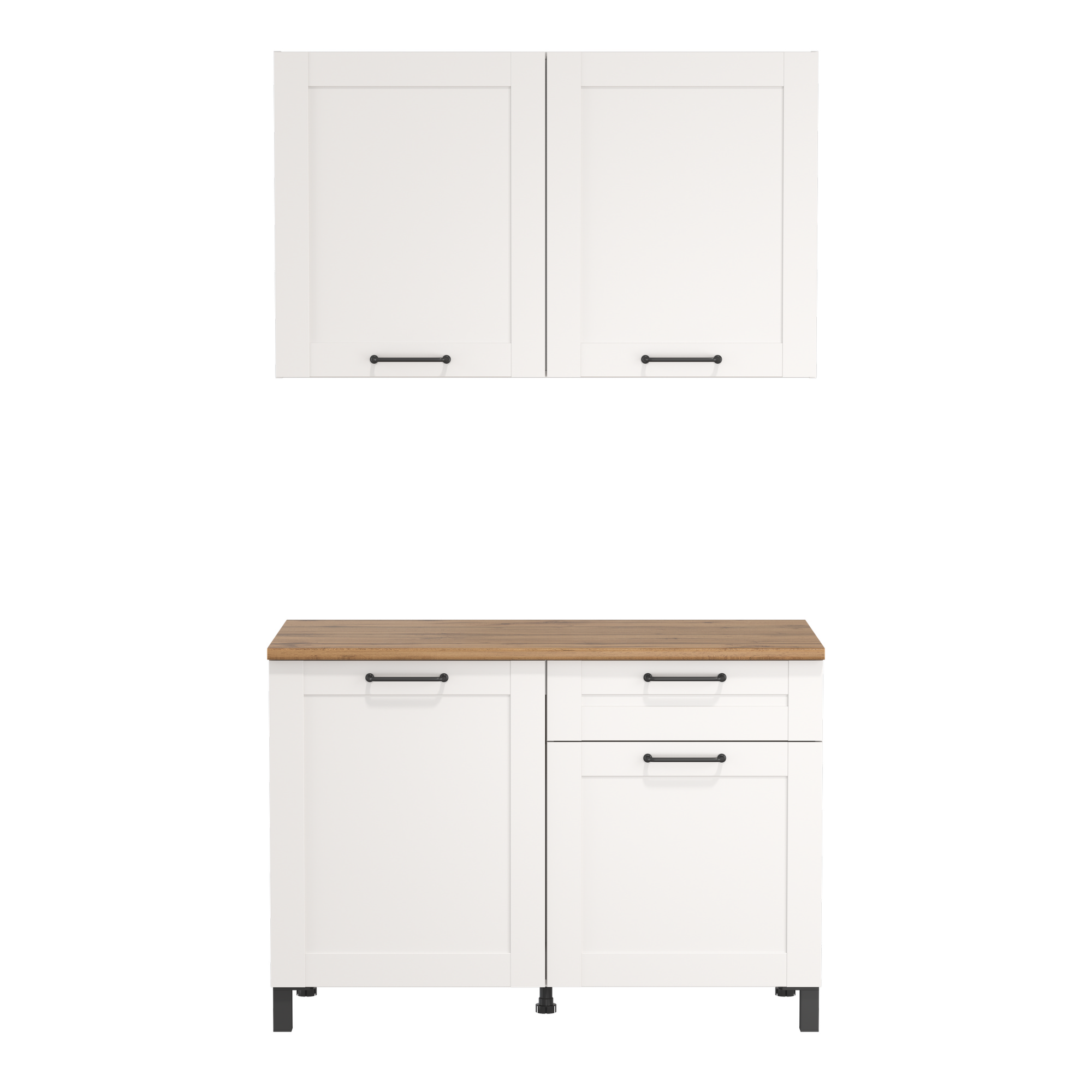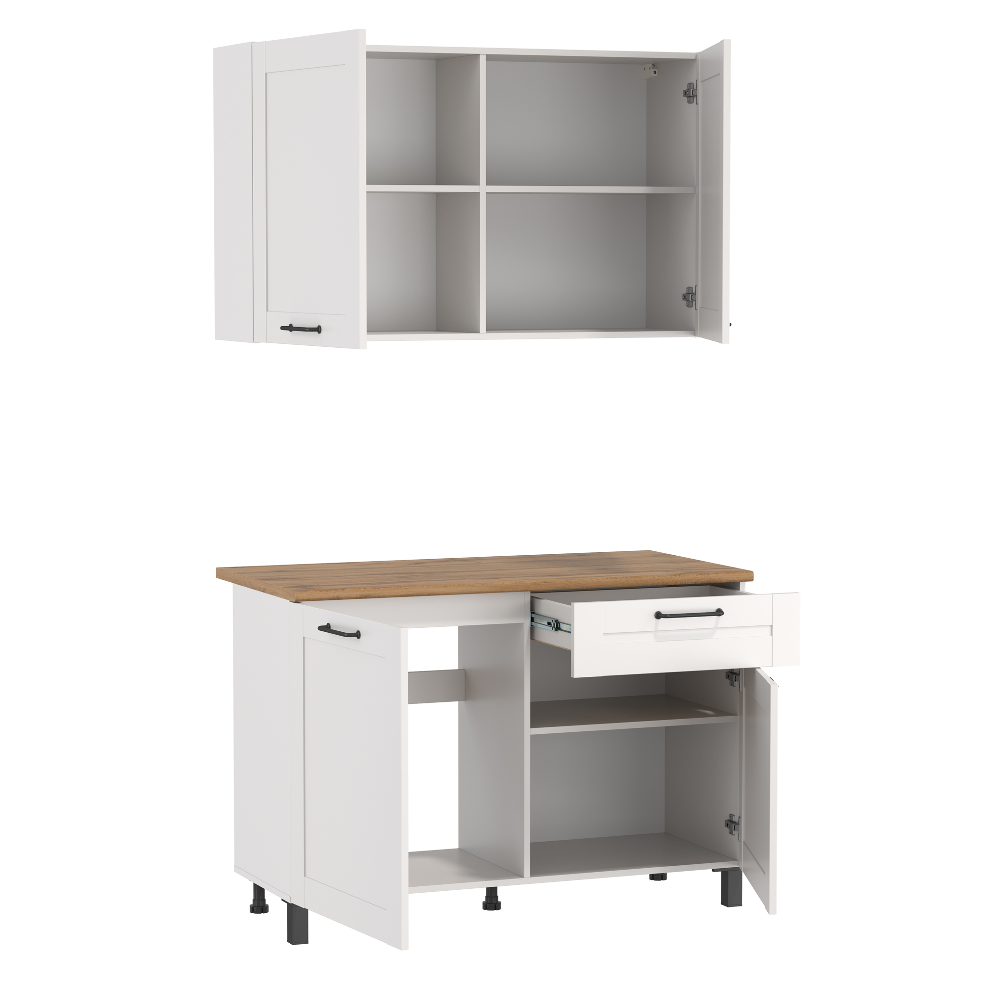 Кухня Аризона (1200) (белый / столешница: дуб вотан / ДВПО: белый / профиль: ПВХ белый О) исполняется в классическом стиле и спокойных цветах. Модель сочетает в себе простоту и функциональность, но при этом не выглядит громоздко. Она гармонично впишется в пространство, не утяжеляя его.