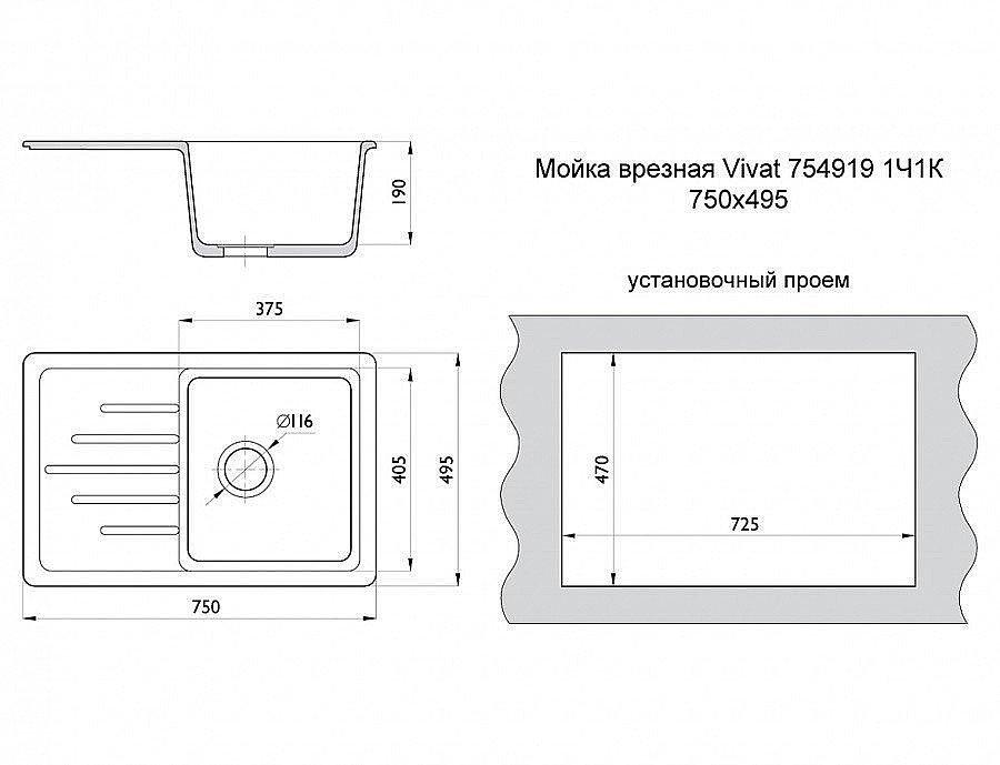 Мойка врезная Vivat 754919 1Ч1К (190х750х495) Гэлакси совмещает благородную привлекательную эстетику с практичностью и хорошим функционалом. Продуманный дизайн уместно дополнит созданный интерьер и органично впишется в любое помещение.