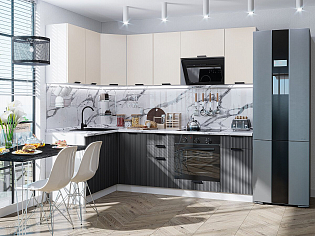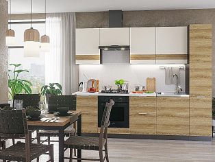 Подбирая практичную поверхность, нужно обратить внимание на наличие составных элементов. Промышленность предлагает объединить вертикальные напольные конструкции общей рабочей поверхностью, что создает видимость единого кухонного пространства, включив туда дополнительные элементы: