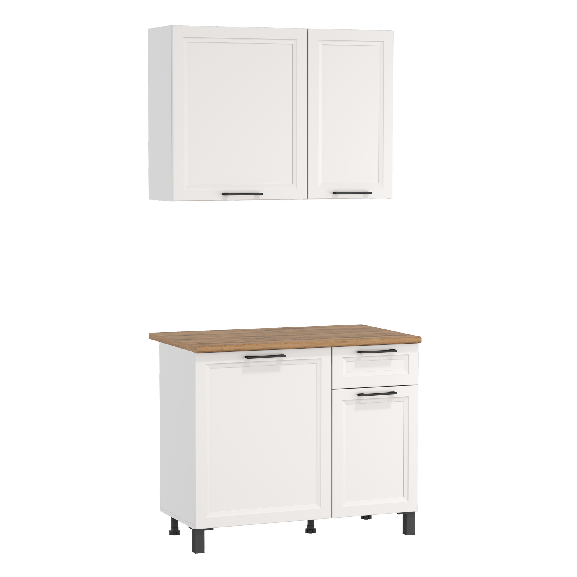 Шкаф Римини (1000) (белый / столешница: дуб вотан / ДВПО: белый / ПВХ белый (О) / профиль: ПВХ белый (О)) исполняется в классическом стиле и спокойных цветах. Модель сочетает в себе простоту и функциональность, но при этом не выглядит громоздко. Она гармонично впишется в пространство, не утяжеляя его.
