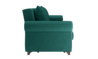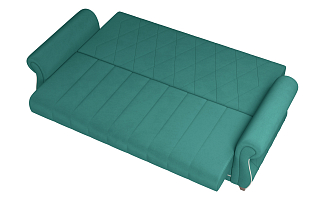 Заказала этот диван в изумрудном цвете. Понравилась его форма – строгая и в то же время необычная. Диван не громоздкий, занимает немного места как в сложенном, так и в разложенном положении. Раскладывается легко. Ткань плотная, качественная и приятная на ощупь.