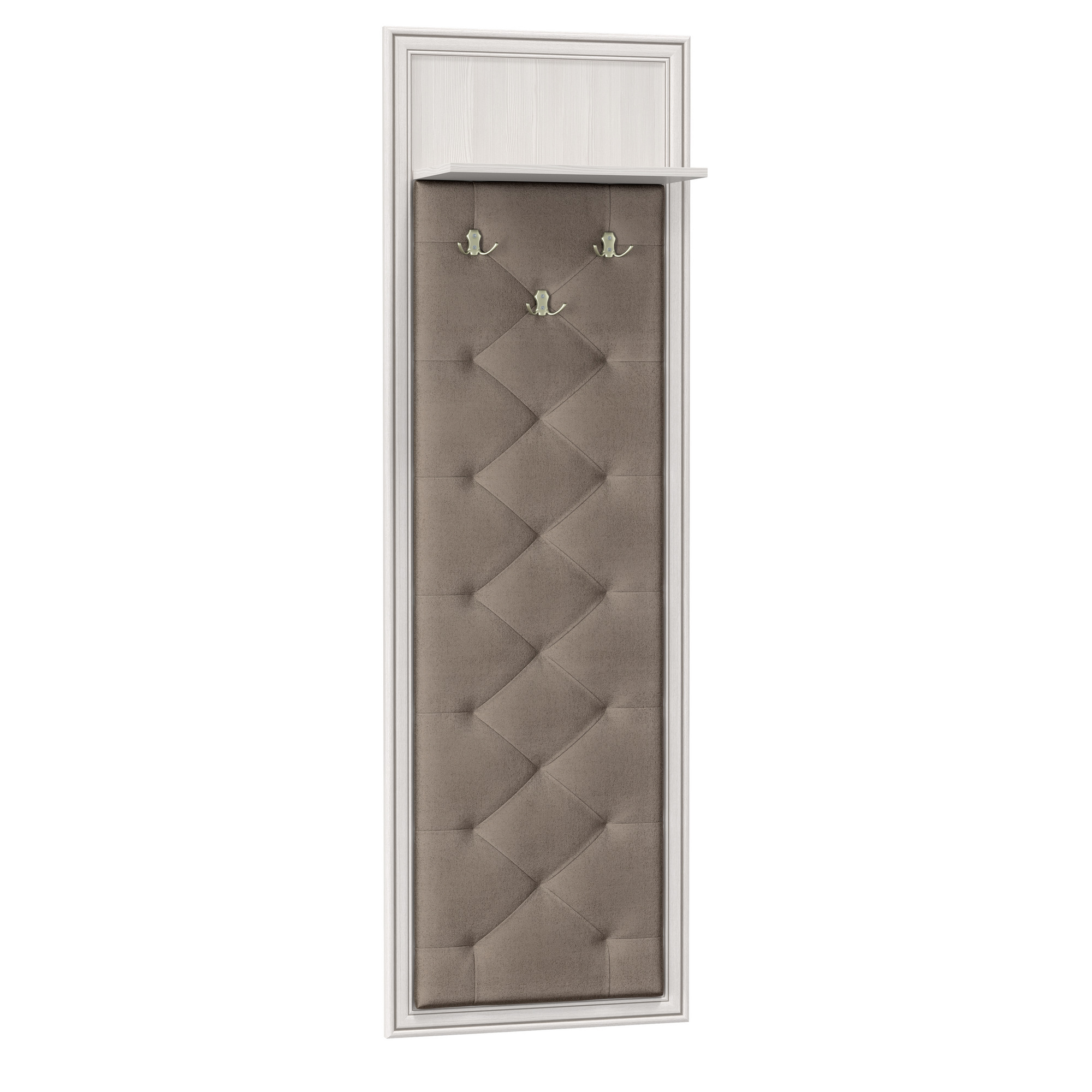 Вешалка Габриэлла (вудлайн кремовый/профиль: аруша венге патина/ткань велюр Fresh хумус) исполняется в классическом стиле и спокойных цветах. Модель сочетает в себе простоту и функциональность, но при этом не выглядит громоздко. Она гармонично впишется в пространство, не утяжеляя его.
